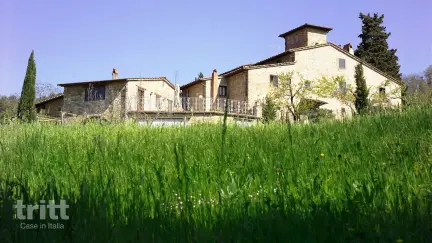 Op een 43 hectare groot domein, omgeven door olijfgaarden en wijnranken, vind je een prachtig gerestaureerde boerderij uit de 14e eeuw. De voormalige fattoria is omgebouwd tot een kleinschalig verblijf met vijf ruime appartementen, elk met de kenmerkende Toscaanse sfeer: natuursteen, houten balken en gewelfde plafonds.