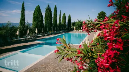 Op het park zijn twee zwembaden aanwezig, waaronder een kinderbad, een tennisbaan, voetbalveldje, biljart en een manege waar paardrijlessen en excursies starten. Het restaurant is geopend van 19.30 tot 22.00 uur voor diner en de poolbar biedt rond lunchtijd drankjes en een lichte lunch. Fietsen en wandelroutes starten direct vanaf het landgoed, en het nabijgelegen dorpje San Donato Fronzano (650 m) biedt een bakker, slager, barretje en kapper. Reggello ligt op 5 km afstand met een ruimere keuze aan winkels en restaurants. Florence is 30 km verwijderd en eenvoudig bereikbaar met de trein. Voor dagtrips kunt u ook Siena, San Gimignano, Arezzo, het Chianti-gebied, Prato of het bos van Vallombrosa bezoeken.