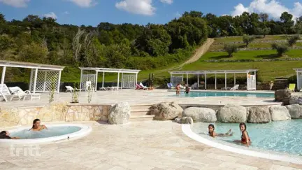 De authentieke landhuizen zijn volledig gerestaureerd en bieden in totaal 11 comfortabele appartementen, allemaal met een eigen terras en veel privacy. Het appartement is geschikt voor 4 personen en ligt in een panoramisch gelegen landhuis. De woonkamer heeft een zithoek met tv en een eenpersoonsslaapbank, plus een open keuken met keukeneiland, inductiekookplaat, koelkast met vriesvak, vaatwasser, oven en magnetron. Er zijn 2 slaapkamers met tweepersoonsbed en beide hebben een ensuite badkamer met douche, toilet, wastafel en bidet. Buiten ligt een kleine tuin met barbecue en een terras met pergola en privé whirlpool, ideaal om in alle rust te genieten van het uitzicht. Het zwembad op het landgoed is speels aangelegd met meerdere niveaus, een kinderbad en een whirlpool van 30°C. Door de ligging tussen olijfgaarden en wijngaarden kijk je bij helder weer zelfs richting zee. Het zwembad is geopend van 08.30 tot 23.00 uur.