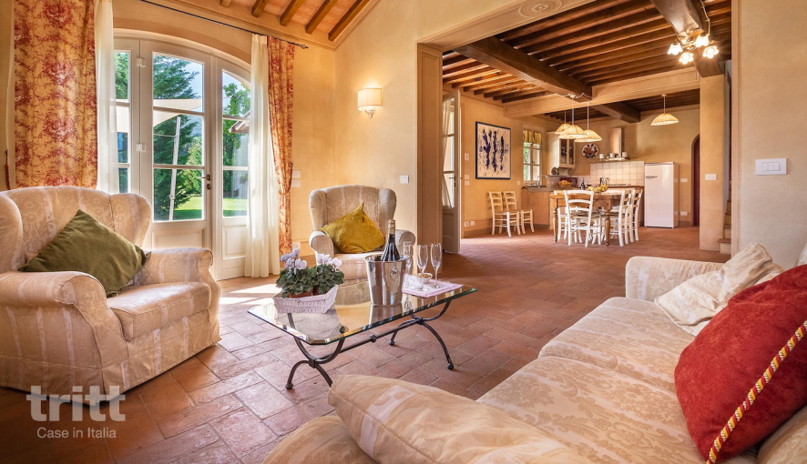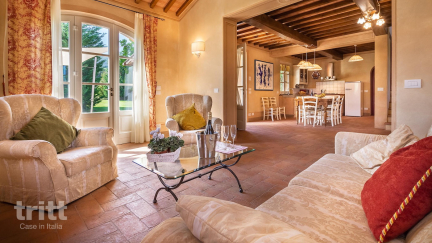 In het huis zie je traditionele kenmerken terug zoals terracotta vloeren, balkenplafonds en een Toscaans getint interieur, maar ook aan moderne gemakken is gedacht zoals airconditioning in bijna alle ruimtes, moderne keukenapparatuur, een muzieksysteem en zelfs een verwarmbaar zwembad.