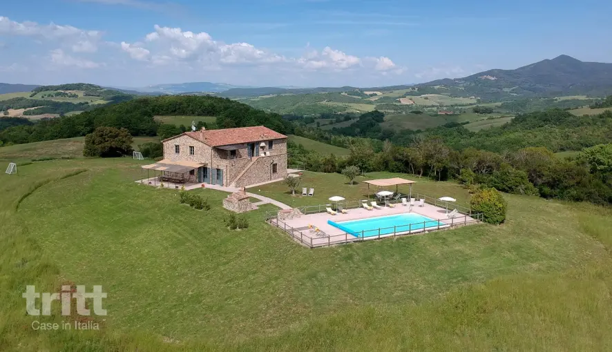 Midden in het glooiende landschap van Toscane, omringd door grasvelden en heuvels, ligt deze karaktervolle villa bij Casale Marittimo. De ligging is volledig vrij en biedt een indrukwekkend 360 graden uitzicht over de omgeving. Hier ervaar je rust en ruimte in elk seizoen, met het comfort van een royaal landhuis.
