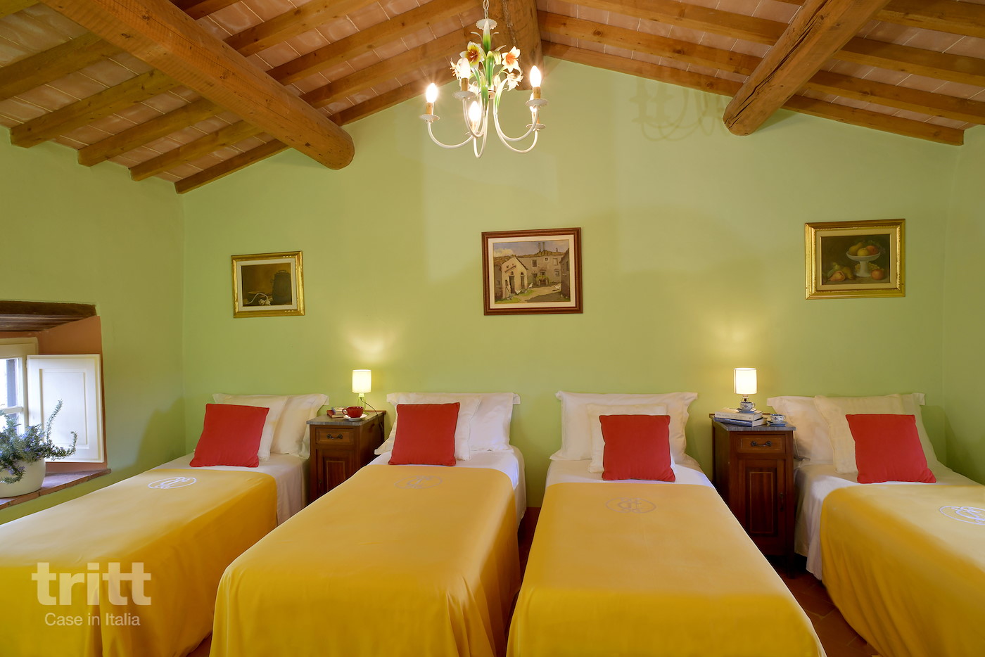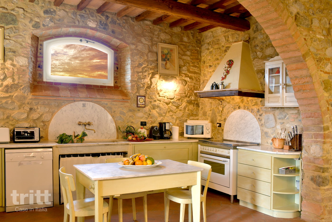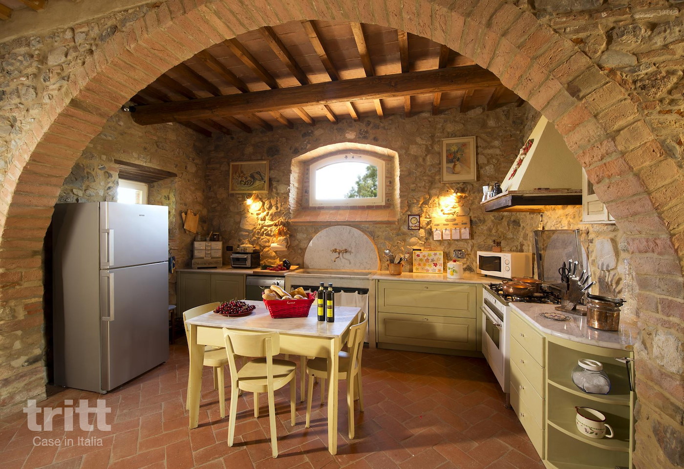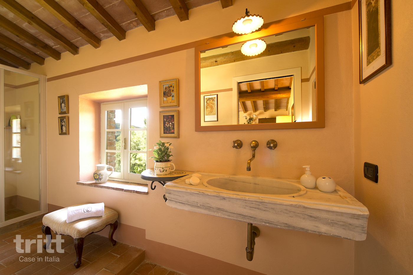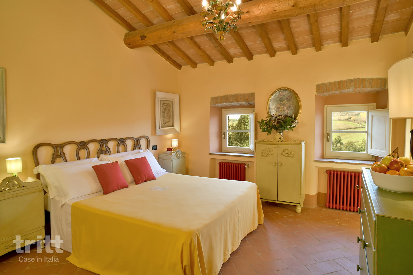 Deze karaktervolle boerderij van natuursteen biedt ruimte aan 10 personen en is ingericht in warme Toscaanse stijl. Op de begane grond ligt de gezellige woonkamer met zithoek, open haard en satelliet-tv, met openslaande deuren naar het terras. Enkele treden lager bevindt zich de woonkeuken met eethoek, die direct aansluit op de tuin. De keuken is voorzien van een 5-pits fornuis met oven, koelkast, magnetron, vaatwasser, (filter)koffiezetapparaat en broodrooster. Vanuit de keuken heb je toegang tot het terras en de tuin. Op de begane grond ligt tevens een slaapkamer met tweepersoonsbed en aangrenzende badkamer. Via een trap bereik je de andere 3 slaapkamers op de verdieping. Twee daarvan hebben een tweepersoonsbed met beiden een aangrenzende badkamer, de andere slaapkamer heeft 4 eenpersoonsbedden en ook een eigen badkamer. Alle badkamers zijn voorzien van douche , toilet en wastafel. Het vakantiehuis is in Toscaanse stijl aangenaam en sfeervol ingericht. Buiten nodigt de ruime tuin uit tot lange dagen in de zon, met een privé zwembad dat in koelere maanden verwarmd kan worden, meerdere terrassen, een veranda met lange eettafel en een stenen barbecue met pizzaoven. Alle ramen beschikken over horren en beneden is er wifi.