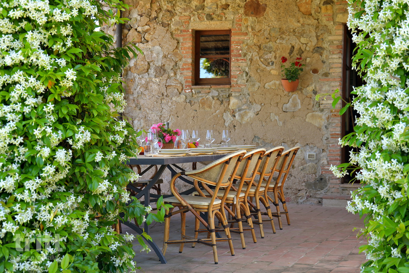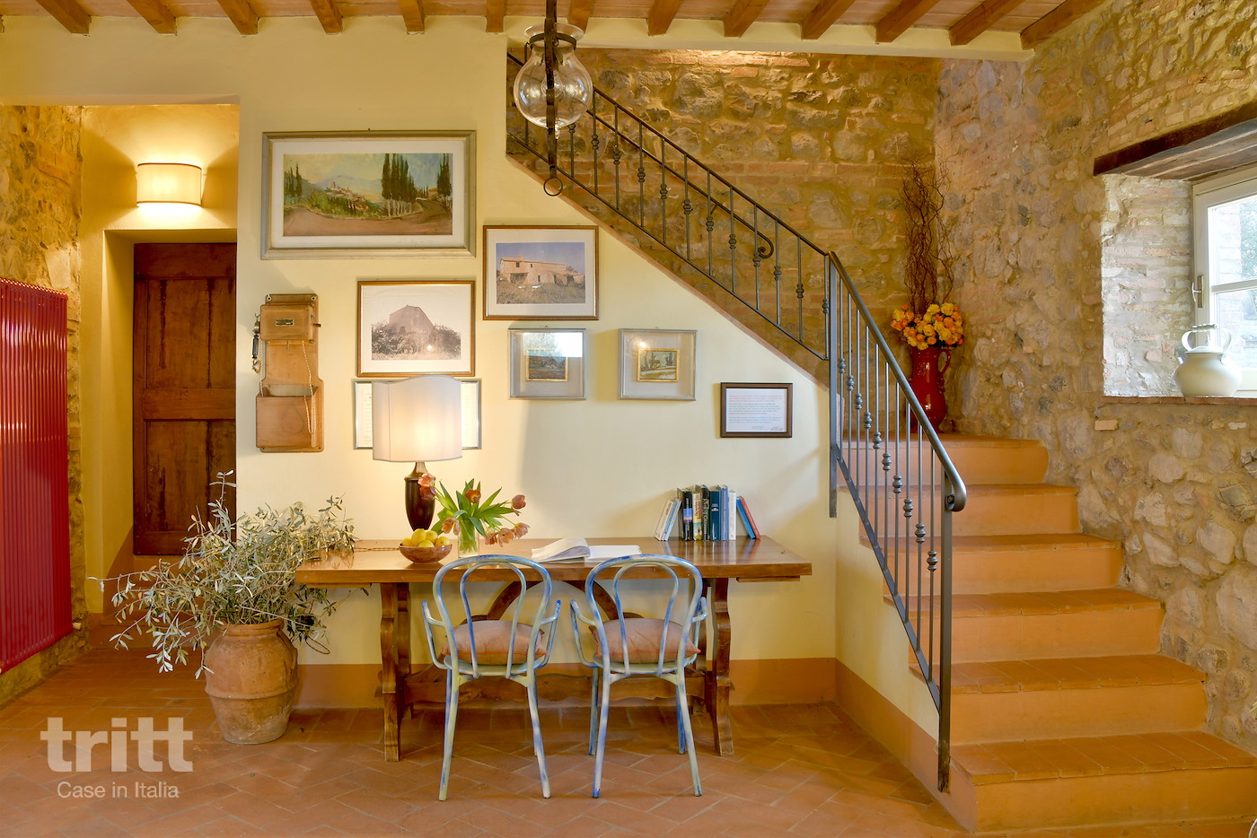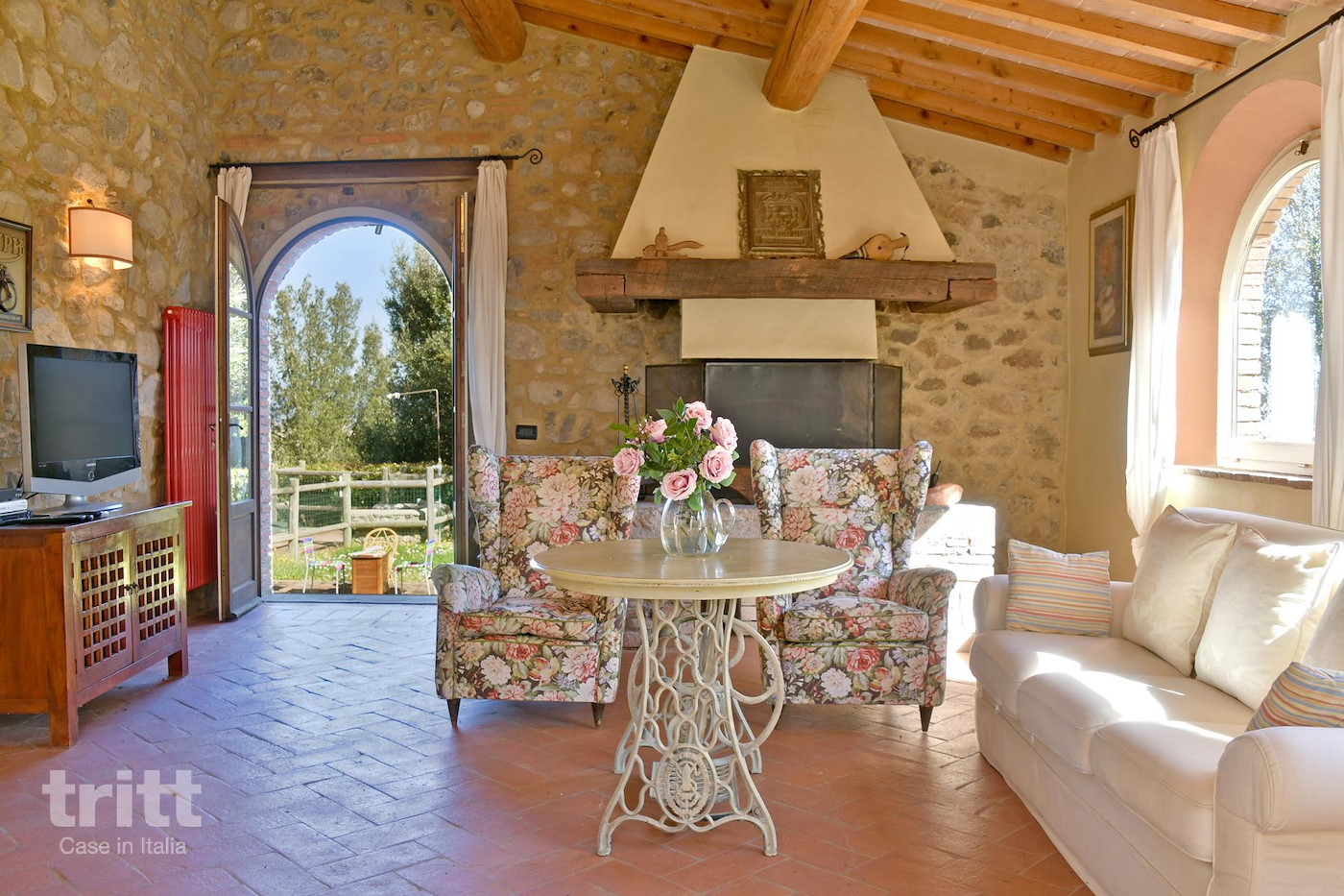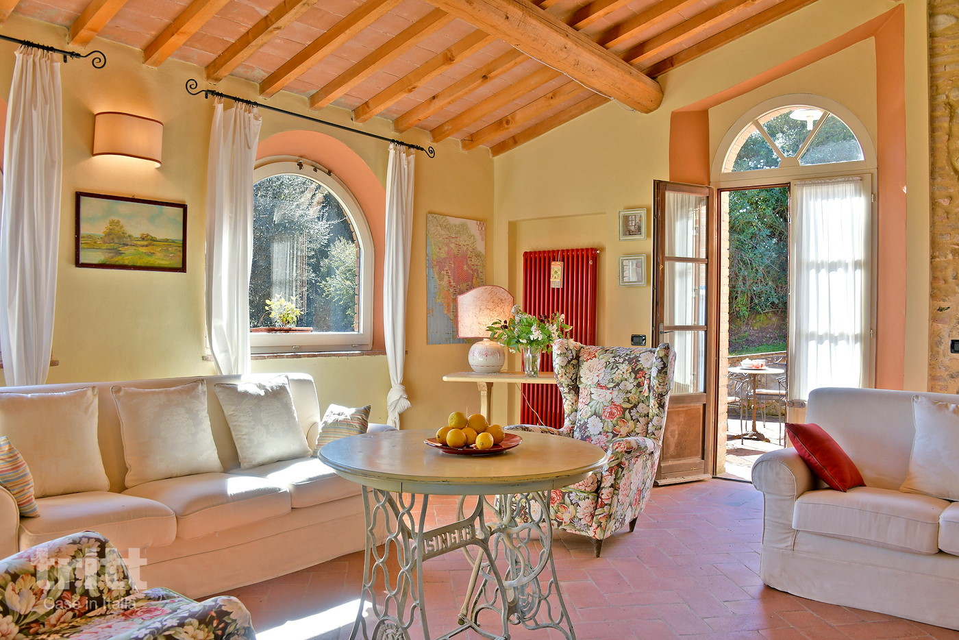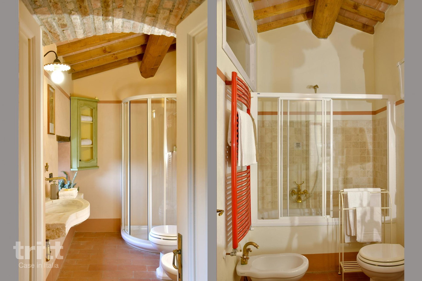 Deze karaktervolle boerderij van natuursteen biedt ruimte aan 10 personen en is ingericht in warme Toscaanse stijl. Op de begane grond ligt de gezellige woonkamer met zithoek, open haard en satelliet-tv, met openslaande deuren naar het terras. Enkele treden lager bevindt zich de woonkeuken met eethoek, die direct aansluit op de tuin. De keuken is voorzien van een 5-pits fornuis met oven, koelkast, magnetron, vaatwasser, (filter)koffiezetapparaat en broodrooster. Vanuit de keuken heb je toegang tot het terras en de tuin. Op de begane grond ligt tevens een slaapkamer met tweepersoonsbed en aangrenzende badkamer. Via een trap bereik je de andere 3 slaapkamers op de verdieping. Twee daarvan hebben een tweepersoonsbed met beiden een aangrenzende badkamer, de andere slaapkamer heeft 4 eenpersoonsbedden en ook een eigen badkamer. Alle badkamers zijn voorzien van douche , toilet en wastafel. Het vakantiehuis is in Toscaanse stijl aangenaam en sfeervol ingericht. Buiten nodigt de ruime tuin uit tot lange dagen in de zon, met een privé zwembad dat in koelere maanden verwarmd kan worden, meerdere terrassen, een veranda met lange eettafel en een stenen barbecue met pizzaoven. Alle ramen beschikken over horren en beneden is er wifi.
