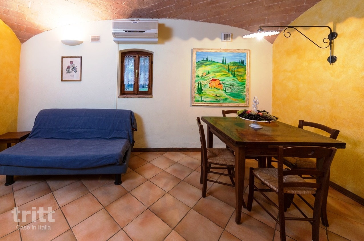 Het verblijf is onderdeel van een voormalig landhuis met 6 appartementen, omringd door een grote parkachtige tuin. Het appartement bestaat uit een woongedeelte met keukenhoek, een slaapkamer met tweepersoonsbed en een badkamer. Buiten geniet je van een fijne tuin met voldoende plek om te zitten en te ontspannen. Het zwembad ligt prachtig tussen de olijfbomen, heeft een zonneterras en een apart kindergedeelte. Op het landgoed lopen paarden, kippen en klein vee, en in het juiste seizoen pluk je zelf fruit of haal je een vers eitje voor het ontbijt. Ook is er een sfeervolle ruimte waar op aanvraag groepsdiners en wijnproeverijen worden georganiseerd.