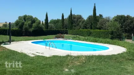 Het appartement bevindt zich op de eerste verdieping en heeft een warme, huiselijke sfeer dankzij de open haard in de woonkamer. Hier vind je ook de eettafel, satelliet-tv en een praktische keukenhoek met 4-pits kookplaat, oven, magnetron, koelkast met vriesgedeelte, waterkoker en Italiaans koffiezetapparaat. Er is een slaapkamer met een tweepersoonsbed en een slaapkamer met twee eenpersoonsbedden, beide slaapkamers zijn voorzien van airconditioning. Er is een badkamer met douche. Buiten, direct voor het appartement in de tuin staat een tafel met stoelen en een parasol, perfect voor ontspannen momenten met uitzicht op de tuin. De grote, volledig omheinde tuin van de agriturismo beschikt over een zwembad, speeltoestel, klimboom en bovenal een waanzinnige uitzicht, waar de kinderen zich kunnen uitleven met de speeltoestellen, een potje tafeltennis kunnen spelen of een balletje kunnen trappen op het grasveld met doelen. Het landgoed heeft ook nog 4 hectare aan bos waar ontspannen wandelingen gemaakt kunnen worden. Het is mogelijk om een extra bed bij te boeken tegen betaling.
