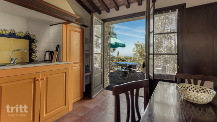 Dit ruime en sfeervolle appartement ligt verscholen tussen olijfbomen in de rustige Val di Cecina. U geniet hier van een prachtig uitzicht op de Toscaanse heuvels en de Tyrreense zee, terwijl het zoutwaterzwembad met hydromassage op het terrein uitnodigt tot ontspanning. De typische Toscaanse inrichting met natuursteen, houten balken en terracotta vloeren geeft het geheel een warme en authentieke sfeer. Guardistallo en Montescudaio liggen op enkele minuten rijden en het strand van Cecina Mare is in ongeveer vijftien minuten te bereiken.