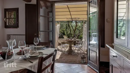 Dit ruime en sfeervolle appartement ligt verscholen tussen olijfbomen in de rustige Val di Cecina. U geniet hier van een prachtig uitzicht op de Toscaanse heuvels en de Tyrreense zee, terwijl het zoutwaterzwembad met hydromassage op het terrein uitnodigt tot ontspanning. De typische Toscaanse inrichting met natuursteen, houten balken en terracotta vloeren geeft het geheel een warme en authentieke sfeer. Guardistallo en Montescudaio liggen op enkele minuten rijden en het strand van Cecina Mare is in ongeveer vijftien minuten te bereiken.