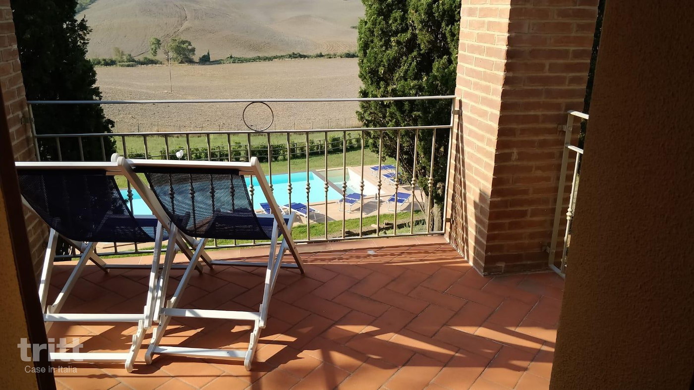 Het appartement maakt deel uit van een kleinschalig, omheind complex midden in het Toscaanse landschap. De inrichting is verzorgd en comfortabel, met een moderne landelijke sfeer. De woonruimte beschikt over een open keuken en zitgedeelte, terwijl de slaapkamers verdeeld zijn over 2 verdiepingen. Zowel boven als beneden is airconditioning aanwezig, net als wifi en een eigen wasmachine. Buiten heb je een privé terras met barbecue. Het centrale infinity zwembad biedt een prachtig uitzicht over de heuvels en is voorzien van ligbedden en een apart kinderbad, ideaal voor ontspannen dagen in de zon.