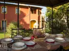 Het appartement is ingericht in warme Toscaanse stijl en biedt plek aan 4 personen. In het woongedeelte staan een eethoek en een tweepersoonsslaapbank, met daarnaast een compacte keukenhoek voorzien van kookplaat, koelkast met vriesvak, combimagnetron en mokà. Via openslaande deuren stap je zo het overdekte terras op, waar je uitkijkt over de tuin en het dorp Lari. Twee treden hoger ligt de slaapkamer met tweepersoonsbed en satelliet-tv, eveneens met toegang tot de tuin. De badkamer heeft een douche, toilet, bidet, wastafel en föhn. Rondom het appartement vind je fruit- en olijfbomen en een fijne sfeer die uitnodigt om buiten te leven. Op het landgoed zijn een zwembad met zonneterras, een restaurant met dagmenu en een tuin waar kinderen heerlijk kunnen spelen.