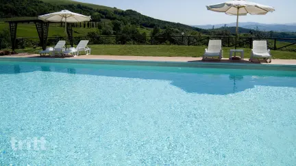Dit appartement voor 2 personen is gelegen op de 1e verdieping. Binnen is het comfortabel en warm ingericht in Toscaanse stijl, met natuursteen, balkenplafonds en cotto vloeren. Het woongedeelte beschikt over een tweepersoonsslaapbank, satelliet-tv en een keuken die is uitgerust met een 4-pits kookplaat, koelkast, vaatwasser, magnetron-oven en een filterkoffiezetapparaat. De slaapkamer heeft een tweepersoonsbed en de badkamer is voorzien van een douche, toilet en bidet. Het gebruik van de slaapbank is mogelijk tegen een toeslag. Je beschikt over een balkon met panoramisch uitzicht. Op het terrein ligt een ruim zwembad met zonneterras, ligbedden, parasols en een gezamenlijke barbecue. Voor jonge kinderen zijn er enkele speeltoestellen aanwezig. Voor extra ontspanning kun je tegen betaling gebruikmaken van de kleine ontspanruimte met whirlpool, Turks bad en fitnesshoek.