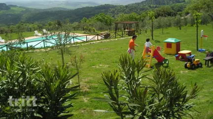 Dit appartement voor 4 personen bevindt zich op 1e verdieping. Binnen is het comfortabel en warm ingericht in Toscaanse stijl, met natuursteen, balkenplafonds en cotto vloeren. Het woongedeelte beschikt over een tweepersoonsslaapbank, satelliet-tv en een keuken die is uitgerust met een 4-pits kookplaat, koelkast, vaatwasser, magnetron en een filterkoffiezetapparaat. Er zijn 2 tweepersoonsslaapkamers waarvan 1 op de 2e verdieping met een klein privé balkon. Er is een badkamer met bad, douche, toilet en bidet. Het appartement heeft een klein balkon en een groot balkon met tuinmeubilair. Het gebruik van de slaapbank is mogelijk tegen een toeslag. Op het terrein ligt een ruim zwembad met zonneterras, ligbedden, parasols en een gezamenlijke barbecue. Voor jonge kinderen zijn er enkele speeltoestellen aanwezig. Voor extra ontspanning kun je tegen betaling gebruikmaken van de kleine ontspanruimte met whirlpool, Turks bad en fitnesshoek.
