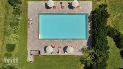 Het vakantiehuis bestaat uit meerdere wooneenheden die samen exclusief worden gehuurd, waardoor je alle ruimte hebt om samen te zijn én je terug te trekken. De indeling over verschillende appartementen maakt het verblijf bijzonder geschikt voor meerdere families. Binnen vind je comfortabele woonruimtes, goed uitgeruste keukens en meerdere slaapkamers met eigen badkamers, ingericht in een warme Toscaanse stijl. Buiten ligt een ruim zwembad met zonneterras, omringd door een grote tuin en uitzicht op het omliggende landschap. Dankzij de volledige afscherming is het verblijf ook prettig voor gezinnen met kinderen.