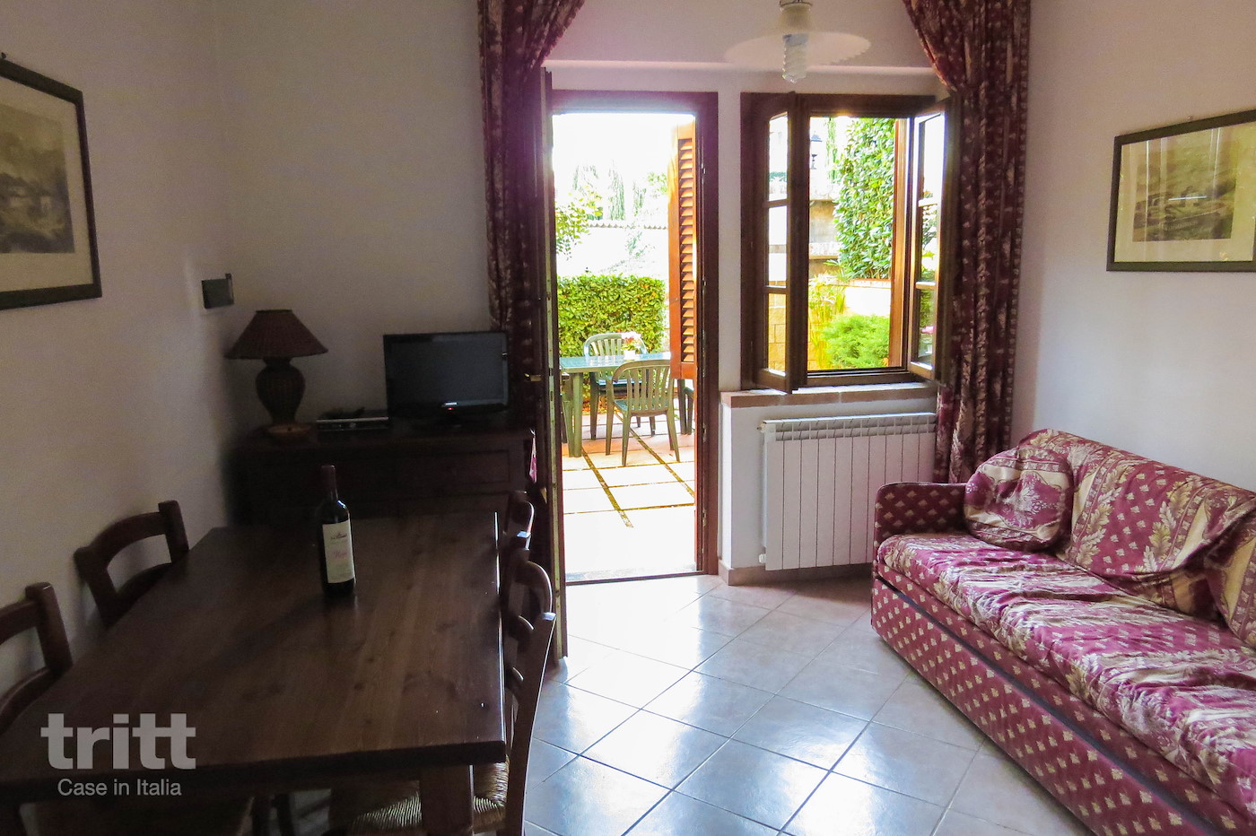 Dit gezellige appartement voor 3 personen en is gelegen op de begane grond. Het woongedeelte beschikt over tweepersoonsslaapbank, eethoek en een keuken met koelkast met apart vriesgedeelte een kookplaat magnetron en koffiezetapparaat. De slaapkamer heeft een tweepersoonsbed en een eenpersoonsbed. De badkamer is voorzien van een douche, toilet en bidet. Buiten heb je een tuintje en privéterras met tafel en stoelen. Via een pad of een stenen trap bereik je in enkele minuten het zwembad en het restaurant. Houd er rekening mee dat je bij het zwembad verplicht een badmuts moet dragen. De auto kan bij het appartement geparkeerd worden. Het restaurant laat je kennis maken met de biologische Toscaanse keuken, ook een ontbijtje is hier mogelijk.