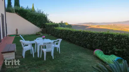 Dit gezellige kindervriendelijk appartement voor 4 personen ligt op de begane grond en de 1e verdieping. Er zijn twee slaapkamers met een tweepersoonsbed en eenpersoonsbed. De badkamer is voorzien van een douche, toilet en bidet. De wenteltrap naar beneden is voorzien van een veiligheidsrekje. Het woongedeelte beschikt over een zitbank, eethoek en een keuken met koelkast met apart vriesgedeelte een kookplaat magnetron en koffiezetapparaat. Vanuit de woonkamer en de keuken heb je openslaande deuren naar de ruime privé tuin met tuinmeubilair, een panoramisch uitzicht en veel privacy. Via een pad of een stenen trap bereik je in enkele minuten het zwembad en het restaurant. Houd er rekening mee dat je bij het zwembad verplicht een badmuts moet dragen. De auto kan bij het appartement geparkeerd worden. Het restaurant laat je kennis maken met de biologische Toscaanse keuken, ook een ontbijtje is hier mogelijk.