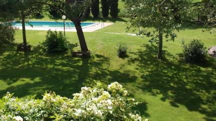 Het vakantieadres biedt een ruim 6-persoons appartement, gelegen op de begane grond. Je beschikt over een woonkamer met slaapbank, een keukenhoek met 4-pits kookplaat, koelkast met vriesvak, Italiaans koffiezetapparaat en eethoek. Verder zijn er twee slaapkamers (één met tweepersoonsbed en één met twee eenpersoonsbedden) en een badkamer met douche. Buiten vind je een privé veranda met tuinmeubilair en uitzicht op de verzorgde tuin rondom het zwembad. Het verwarmde zwembad bevindt zich op het deel van het landgoed dat via een korte wandeling bereikbaar is. Beide landhuizenzijn omheind en beschikken over parkeergelegenheid.