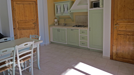 Dit driekamerappartement (type R1/R5/R6) ligt op de begane grond en is geschikt voor zes personen. Binnen vind je een lichte woonruimte met keukenhoek, magnetron, vaatwasser, tv en een tweepersoonsslaapbank. Er zijn twee slaapkamers, één met een tweepersoonsbed en één met twee eenpersoonsbedden, en een ruime badkamer met douche. Buiten beschik je over een privéterras met eettafel, stoelen en barbecue, waar je ’s avonds kunt dineren met uitzicht op de heuvels. De inrichting is eenvoudig, maar verzorgd, met Toscaanse details die zorgen voor een warme en landelijke sfeer.