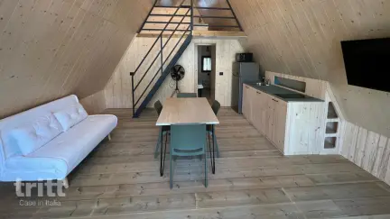 Deze glamping tent is geschikt voor vijf personen en biedt een fijne combinatie van het buitenleven en moderne gemakken. Binnen vind je een woonkamer met eenpersoons slaapbank, tv en een keukenblok met magnetron en koelkast met vriesvak. Op de vide bevindt zich een slaapkamer met tweepersoonsbed, terwijl er op de begane grond een slaapkamer met twee eenpersoonsbedden is. De badkamer beschikt over een douche, toilet, bidet en wastafel. Buiten is er een veranda met tafel en stoelen, waar je ’s ochtends geniet van de eerste zon of ’s avonds samen dineert onder de sterren. De tent is voorzien van airconditioning, en er zijn in totaal twee tenten van dit type beschikbaar. Aankomst en vertrek zijn mogelijk op zondag in het hoogseizoen. Het hart van het park wordt gevormd door een groot, organisch gevormd zwembad (ca. 300 m², onverwarmd) met een ondiep gedeelte voor kinderen en hydromassage. De sfeer is gemoedelijk en kindvriendelijk: er is een veldje met voetbaldoelen, speeltoestellen en een tafeltennistafel. Bij de bar kun je terecht voor een ijsje of een lichte snack. De ligging op de heuvel zorgt voor een heerlijk uitzicht over het Toscaanse landschap en een aangename bries tijdens warme zomerdagen. De toegangsweg is landelijk en licht stijgend – een kleine prijs voor zo’n rustige ligging.