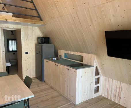 Deze glamping tent is geschikt voor vijf personen en biedt een fijne combinatie van het buitenleven en moderne gemakken. Binnen vind je een woonkamer met eenpersoons slaapbank, tv en een keukenblok met magnetron en koelkast met vriesvak. Op de vide bevindt zich een slaapkamer met tweepersoonsbed, terwijl er op de begane grond een slaapkamer met twee eenpersoonsbedden is. De badkamer beschikt over een douche, toilet, bidet en wastafel. Buiten is er een veranda met tafel en stoelen, waar je ’s ochtends geniet van de eerste zon of ’s avonds samen dineert onder de sterren. De tent is voorzien van airconditioning, en er zijn in totaal twee tenten van dit type beschikbaar. Aankomst en vertrek zijn mogelijk op zondag in het hoogseizoen. Het hart van het park wordt gevormd door een groot, organisch gevormd zwembad (ca. 300 m², onverwarmd) met een ondiep gedeelte voor kinderen en hydromassage. De sfeer is gemoedelijk en kindvriendelijk: er is een veldje met voetbaldoelen, speeltoestellen en een tafeltennistafel. Bij de bar kun je terecht voor een ijsje of een lichte snack. De ligging op de heuvel zorgt voor een heerlijk uitzicht over het Toscaanse landschap en een aangename bries tijdens warme zomerdagen. De toegangsweg is landelijk en licht stijgend – een kleine prijs voor zo’n rustige ligging.