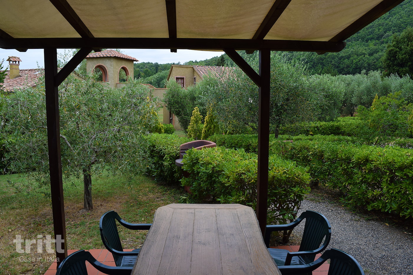 Het park ligt op een uitgestrekt landgoed van ruim 200 hectare en bestaat uit meerdere gerestaureerde gebouwen in klassieke Toscaanse stijl met natuurstenen muren, houten balken en cottovloeren. Verderop, in een rustiger deel van het terrein, liggen glamping-tenten en bungalows tussen de bomen.