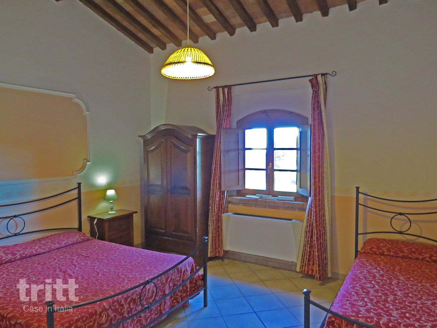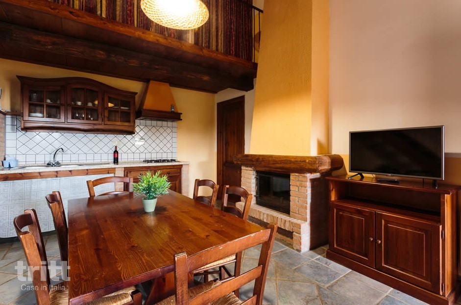 Dit tweekamerappartement met open slaapvide ligt op de eerste verdieping en biedt comfortabel plaats aan zes personen. Het woongedeelte heeft een open haard, zitbank en een keukenhoek met kookplaat, magnetron en koffiezetapparaat. De slaapkamer beschikt over een tweepersoonsbed en een eenpersoonsbed, terwijl op de open vide nog een tweepersoonsbed en een eenpersoonsbed staan. De badkamer is voorzien van douche, toilet en wastafel. Onderaan de trap ligt een gezellige pergola met tafel, stoelen en barbecue, en aansluitend een privétuintje met ligstoelen. De inrichting is eenvoudig, maar met de typische Toscaanse charme: houten balken, terracotta vloeren en veel lichtinval. Centraal op het terrein ligt een groot, organisch gevormd zwembad (ca. 300 m², onverwarmd) met een ondiep gedeelte voor kinderen en hydromassage, badmuts niet verplicht. Rondom het zwembad ligt een ruim zonneterras met ligstoelen en parasols, en voor de kinderen is er volop speelruimte met een voetbalveldje, tafeltennistafel en enkele speeltoestellen. IJsjes en lichte snacks zijn verkrijgbaar bij de bar. De ligging op de heuvel zorgt niet alleen voor koele avonden en frisse lucht, maar ook voor panoramisch uitzicht over de Toscaanse natuur. De appartementen zijn eenvoudig ingericht, maar voorzien van airconditioning, precies wat je nodig hebt voor een ontspannen gezinsvakantie.