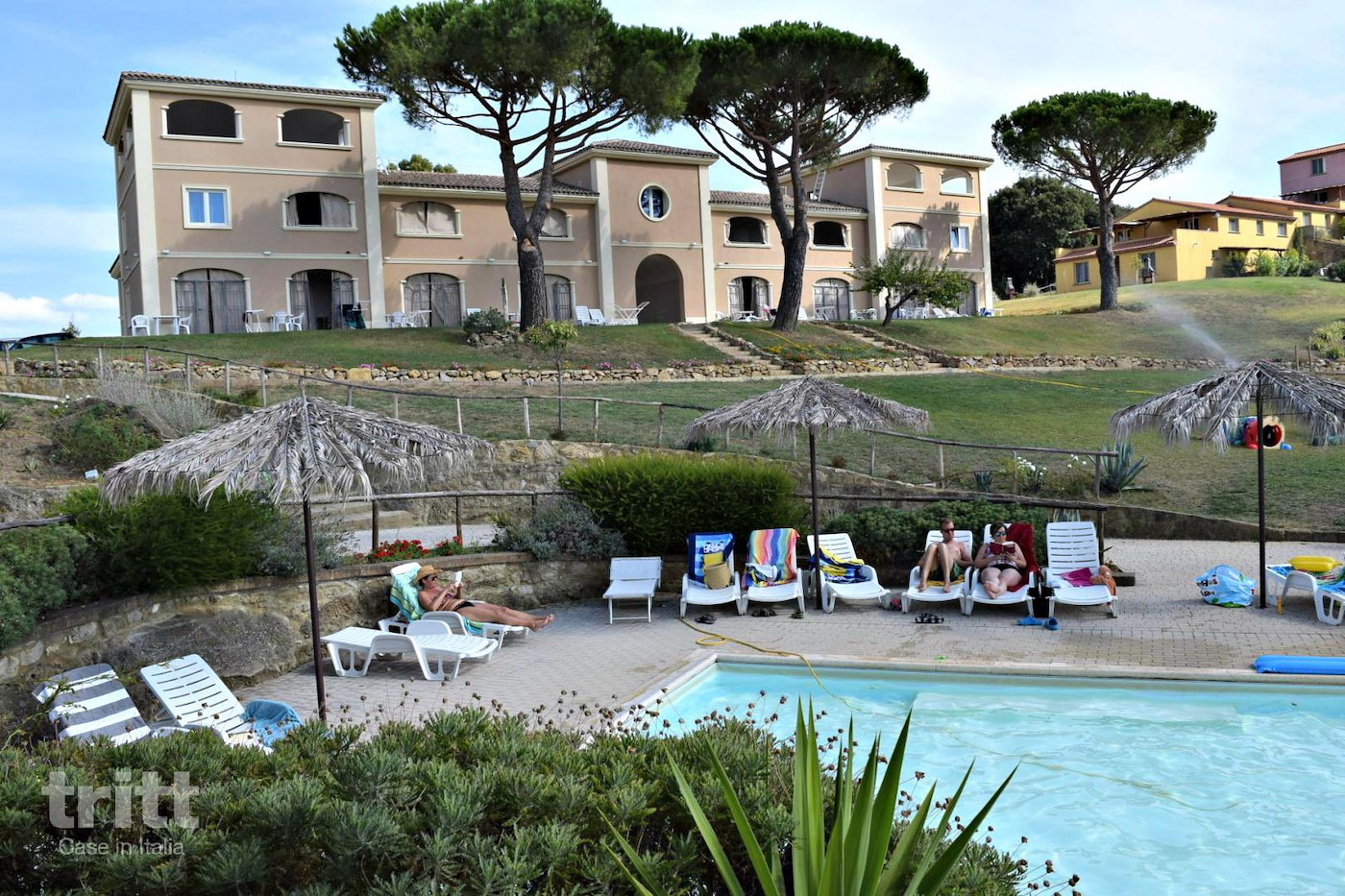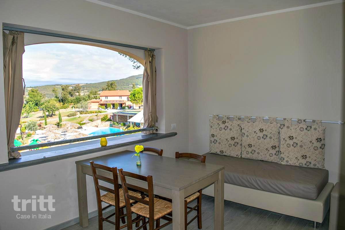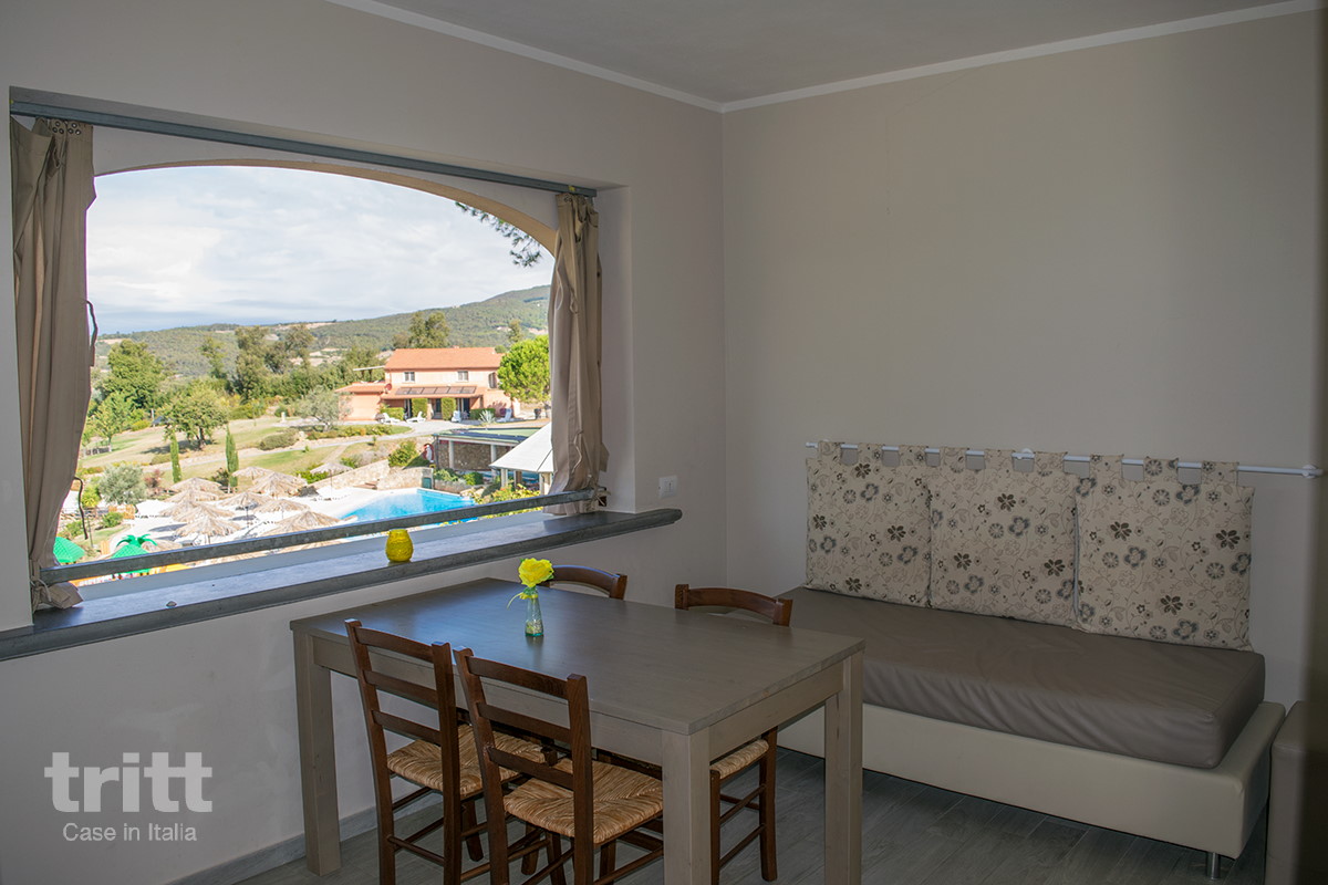 Deze prachtig gelegen agriresidence bestaat uit meerdere landelijke gebouwen met in totaal 45 appartementen, geschikt voor 2 tot 6 personen. De inrichting is warm en typisch Toscaans, met houten balken, tegelvloeren en kleurrijke accenten. Het geheel ademt een rustieke sfeer, terwijl je geniet van moderne gemakken en het panoramische uitzicht over zee en wijngaarden. In de tuin liggen twee zwembaden (onverwarmd), waarvan één met een kindergedeelte. ’s Avonds worden de baden sfeervol verlicht en kun je nog een verfrissende duik nemen onder de Toscaanse sterrenhemel. Bij het zwembad ligt een restaurant met terras waar je terecht kunt voor een Italiaanse maaltijd, een glas wijn of een espresso aan de bar. Ook een eenvoudig ontbijt is op aanvraag mogelijk. Het 2-persoons vakantieappartement (2+2 pers.) bevindt zich op de begane grond of eerste verdieping van een van de landhuizen (A t/m E). Het heeft een woonkamer met slaapbank, eethoek en keukenblok, een slaapkamer met tweepersoonsbed en een badkamer met douche, toilet en bidet. Afhankelijk van de ligging beschikt het appartement over een overdekt terras of balkon: de perfecte plek voor een glas wijn bij zonsondergang.