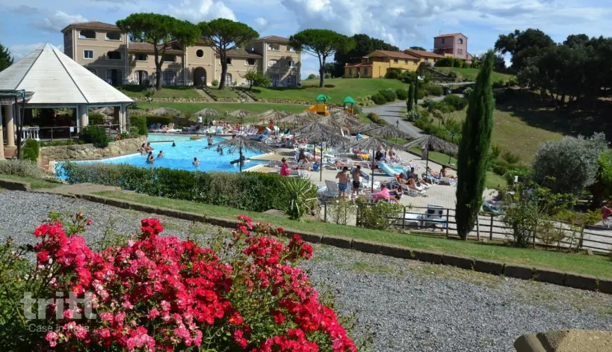 De agriresidence bestaat uit 45 appartementen, verspreid over meerdere landhuizen. Het 4-persoons appartement ligt op de begane grond, en beschikt over een overdekt terras met tuinmeubilair: perfect om buiten te ontbijten of te genieten van de zonsondergang met een glas wijn. Binnen vind je een gezellige woonkamer met tweepersoonsslaapbank, eethoek en keukenblok, een slaapkamer met tweepersoonsbed, en een open slaapvide met twee eenpersoonsbedden, bereikbaar via een trap. De badkamer heeft een douche, toilet en bidet. De inrichting is in warme Toscaanse stijl met houten balken en tegelvloeren. De accommodatie beschikt over twee zoutwaterzwembaden (onverwarmd), waarvan één met kindergedeelte. Rondom de zwembaden ligt een ruim zonneterras met ligstoelen, parasols en buitendouche. Naast het zwembad ligt een restaurant en bar waar je terecht kunt voor koffie, een drankje of een eenvoudige Toscaanse maaltijd. Op aanvraag is ook een Italiaans ontbijt mogelijk. Voor kinderen is er volop speelruimte met een tafeltennistafel, speeltoestellen en een vijvertje met vissen en kikkers bij de receptie. De residence is goed bereikbaar via een geasfalteerde weg, volledig omheind en voorzien van een toegangshek.