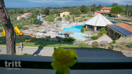 De residence Vista Mare bestaat uit 45 appartementen, ingericht in warme, landelijke stijl met terracotta vloeren en houten balkenplafonds. Dit 6-persoons appartement ligt op de begane grond of eerste verdieping en beschikt over een overdekt terras of balkon met uitzicht over het Toscaanse landschap. Binnen vind je een lichte woonkamer met eethoek, keukenblok en tweepersoonsslaapbank, een slaapkamer met tweepersoonsbed, een tweede slaapkamer met twee eenpersoonsbedden, een badkamer met douche, toilet en bideten een extra aparte toiletruimte. Ideaal voor gezinnen of stellen die samen reizen. Het complex heeft twee zwembaden (onverwarmd), waarvan één met kinderbad, omringd door een zonneterras met ligstoelen en parasols. Bij het zwembad ligt een gezellig restaurant en bar waar je terecht kunt voor koffie, drankjes of eenvoudige Toscaanse gerechten. ’s Avonds is het zwembad sfeervol verlicht, perfect voor een ontspannen duik met uitzicht op de ondergaande zon. Voor kinderen is er volop vermaak met een tafeltennistafel, speeltoestellen en een klein vijvertje met vissen en kikkersbij de receptie.