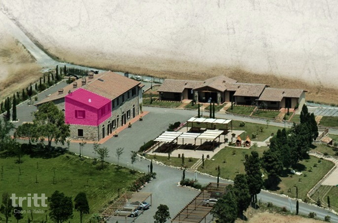 Het historische landhuis uit de 18e eeuw bestaat uit meerdere appartementen die zijn ingericht in typische Toscaanse stijl. De oude hooischuur is volledig gerenoveerd en vormt nu samen met het hoofdgebouw een kleinschalig vakantieverblijf met 12 appartementen. Dit appartement ligt op de verdieping en bestaat uit een ruime woonkamer met tweepersoons slaapbank, keuken, een slaapkamer met tweepersoonsbed en een badkamer met douche, toilet, bidet en wastafel. Buiten is een zitje op het grote gedeelde terras. Op het terrein ligt een groot zwembad van 18×11 m, een apart kinderbad van 5×4 m en een ruim zonneterras met ligstoelen en parasols. Kinderen kunnen spelen in de overdekte speelruimte of avonturen beleven in het aangrenzende pijnbomenbos van 1,5 hectare met wandelroutes, jogpad en rustplaatsen. Rondom het hoofdgebouw ligt een schaduwrijk terras met banken en tafels, ideaal om samen te eten. Er zijn 3 barbecuezones voor gezamenlijk gebruik. In het hoogseizoen is er wekelijks een gezellige avond met muziek en hapjes. Verder kun je lokale wijn en olijfolie kopen en is er een broodjesservice (dagelijks in het hoogseizoen, buiten het seizoen op za/wo/vr). Het dorp Santa Luce ligt op 2 km en heeft 2 bakkers.