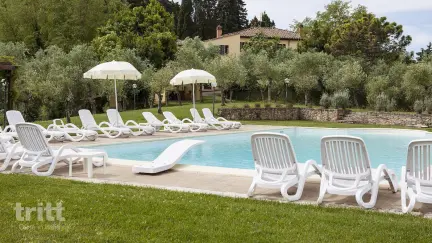Dit ruime appartement ligt op de eerste verdieping van een traditioneel Toscaans landhuis. Je verblijft in een comfortabele leefruimte met een keuken en eettafel, 3 slaapkamers en 2 badkamers. De slaapkamers zijn voorzien van airco. Buiten beschik je over een privéterras met veel privacy, perfect om te ontspannen in de schaduw of te dineren in de avondkoelte. Het grote zwembad ligt midden in het groen en is ’s avonds sfeervol verlicht, waardoor je hier volop kunt genieten van lange zomerdagen.