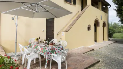 Temidden van glooiende heuvels tussen Pisa en Volterra ligt dit appartement op een uitgestrekt Toscaans wijnlandgoed. De groene omgeving, het uitzicht op een eeuwenoud klooster en de rust van het platteland maken dit een bijzondere plek voor een ontspannen vakantie in Italië. Het landschap rond de villa ademt de sfeer van het echte Toscane.