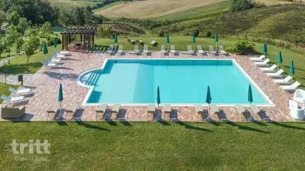 Het appartement is sfeervol ingericht in Toscaanse stijl, met een woonkamer, keukenhoek, twee slaapkamers en een badkamer. Buiten beschik je over een eigen zitplek in de tuin of een balkon, afhankelijk van de ligging. Een deel van de appartementen heeft airconditioning. In de grote tuin ligt het zoutwaterzwembad, omgeven door ruimte om te ontspannen terwijl je uitkijkt over het typische Toscaanse decor. Op het landgoed vind je een restaurant, paarden, activiteiten voor kinderen en verschillende workshops, allemaal met aandacht voor lokale producten en traditie.