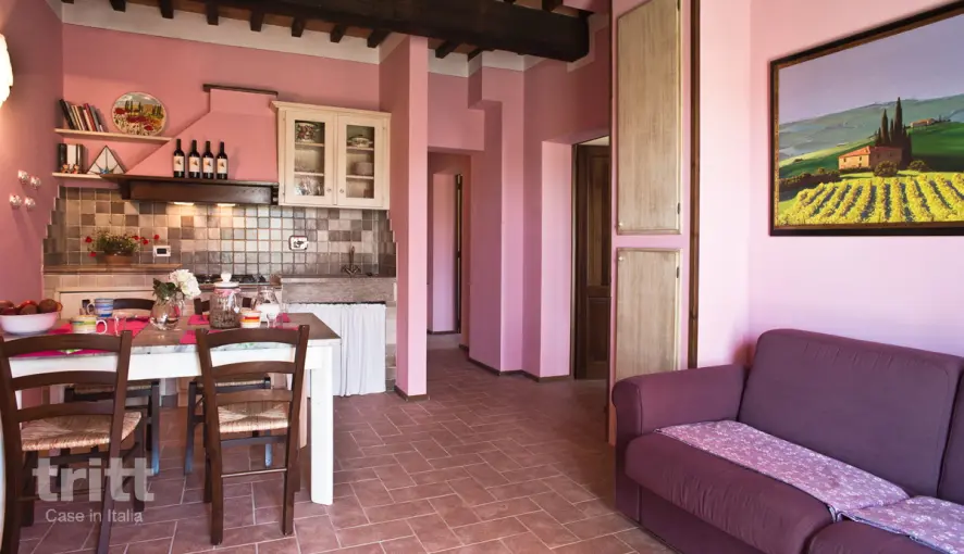 Dit gezellige appartement beschikt over een eigen entree, een woonkamer met bank, tv en een praktische keuken met onder meer een kookplaat, magnetron en koelkast met vriesvak. Er is een slaapkamer met een tweepersoonsbed en een slaapkamer met twee eenpersoonsbedden en de badkamer heeft een douche en toilet. Buiten vind je een privéterras met tuinmeubilair, perfect om te genieten van het uitzicht en de rust. Airconditioning is beschikbaar tegen een meerprijs. Het bed voor de 5e persoon is tegen betaling. In de tuin ligt een heerlijk zwembad met zonneterras en ligbedden, hier kom je tot rust omringd door olijfbomen, natuur en uitzicht tot zover je kunt kijken. Voor de allerkleinsten zijn er enkele speeltoestellen in de tuin. Elke ochtend kun je in de ontbijtzaal tegen betaling gebruik maken van een ontbijtje, je hebt daarbij keuze uit een simpel Italiaans ontbijt: alleen een koffie en een cornetto (soort croissant) of een meer Internationaal ontbijt waarbij je ook keuze hebt uit brood, kaas, worst, (huisgemaakte) jam, yoghurt, sap en fruit. In de maanden juni, juli en augustus is er overigens ook een broodjesservice beschikbaar.