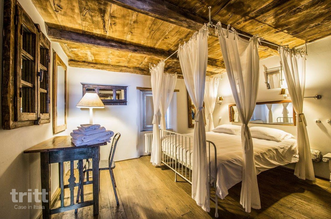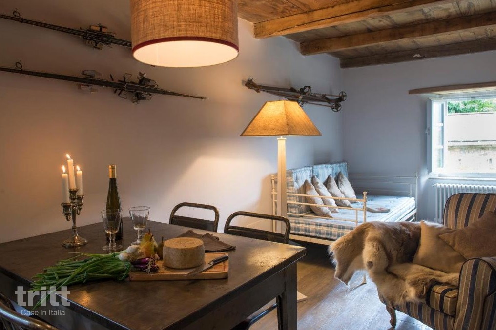 De voormalige 17e-eeuwse villa is met veel zorg getransformeerd tot een kleinschalig verblijf met stijlvolle appartementen. Natuurlijke materialen zoals steen en hout zorgen voor een warme uitstraling, terwijl moderne voorzieningen garant staan voor comfort. Dit appartement op de begane grond is intiem en romantisch, met een volledig ingerichte keuken, een gezellige zithoek met kachel en een slaapkamer met hemelbed. Buiten wacht een groene tuin met een verwarmd zwembad met jetstream, een barbecue en pizzaoven. Na een actieve dag in de bergen is dit een fijne plek om tot rust te komen.