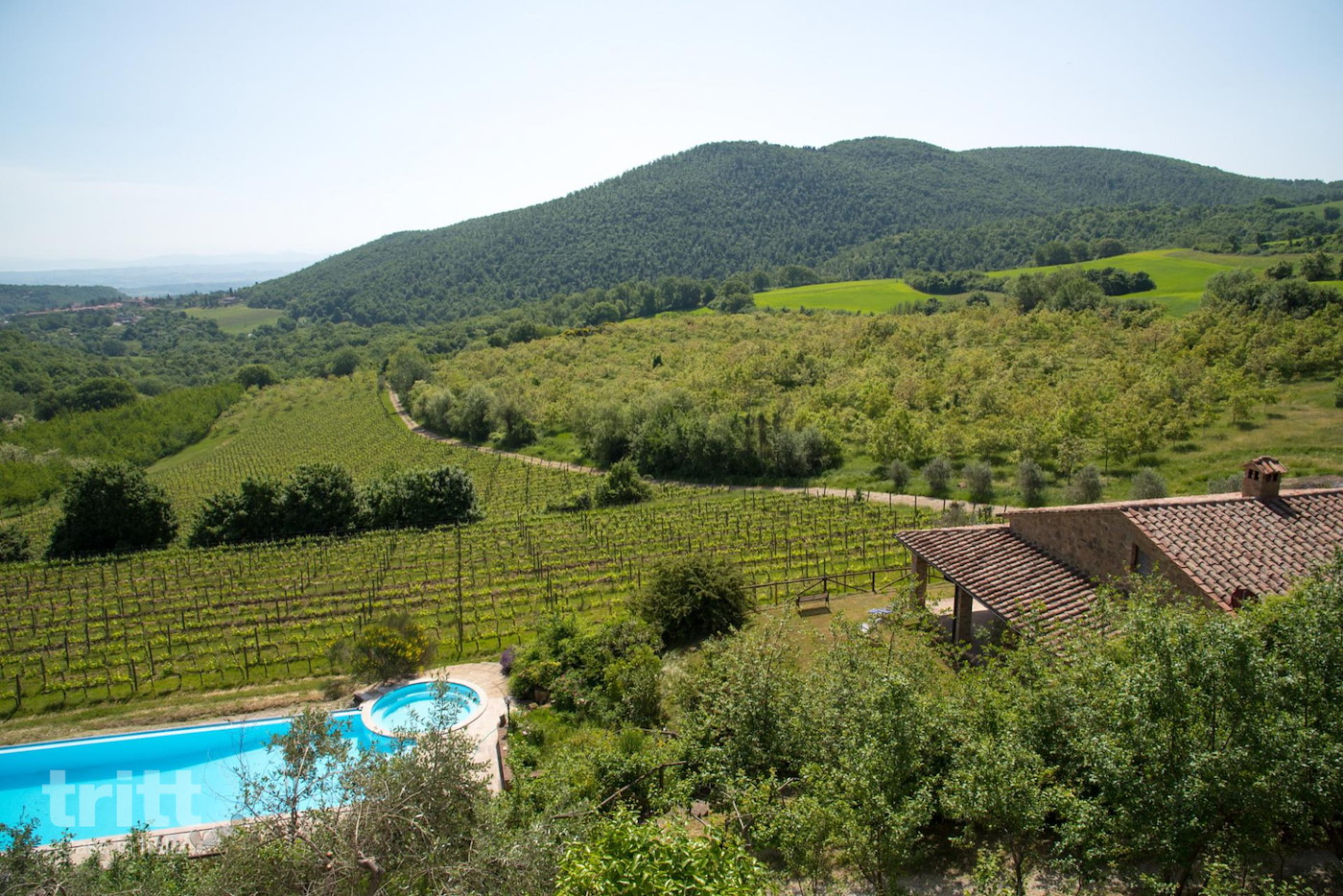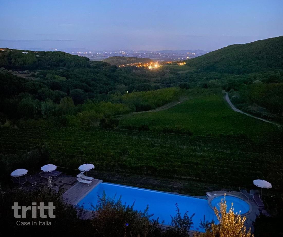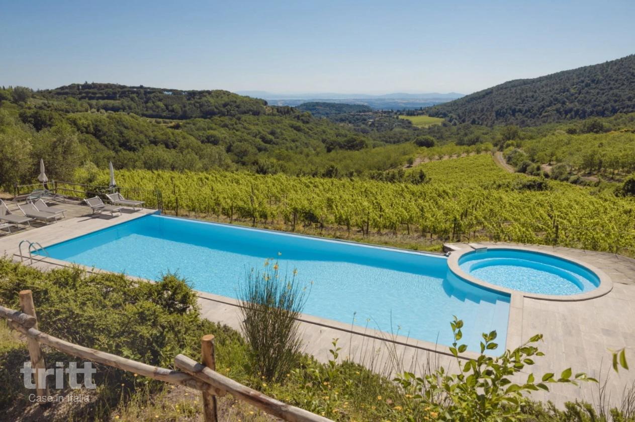 Deze kleinschalige vakantieboerderij ligt op een biologisch wijnlandgoed en bestaat uit enkele appartementen en vrijstaande huisjes met veel privacy. Het gelijkvloerse appartement voor 7 personen is ruim en comfortabel ingericht. Binnen vind je een lichte woonkamer met zithoek, open haard, eethoek en een tweepersoonsslaapbank, aansluitend aan een praktische keuken. Er zijn 2 slaapkamers, waarvan één met een tweepersoonsbed en één met een tweepersoonsbed en een extra eenpersoonsbed, beide met een eigen badkamer. Buiten beschikt het verblijf over een overdekt terras met tuinmeubilair en een prachtig uitzicht over de wijngaarden. Op het terrein is een zwembad met jacuzzi, omringd door ligbedden en parasols, ideaal om te ontspannen na een dag in de Toscaanse zon.