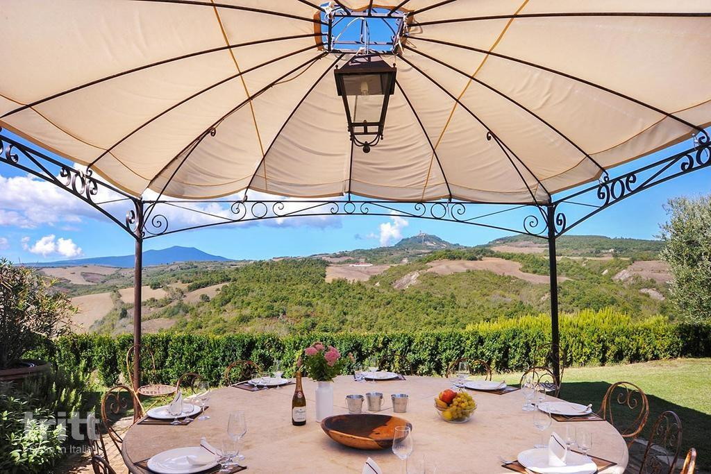 Midden in het glooiende landschap van de Val d’Orcia, vlak bij het historische Radicofani, ligt deze exclusieve villa op een heuvel met indrukwekkend panoramisch uitzicht. De ligging is landelijk, groen en volledig vrij, met vergezichten over cipressen, wijngaarden en Toscaanse heuvels. Hier ervaar je rust, ruimte en privacy op het hoogste niveau. Een uitzonderlijke plek voor een verblijf met familie, vrienden of collega’s in Toscane.