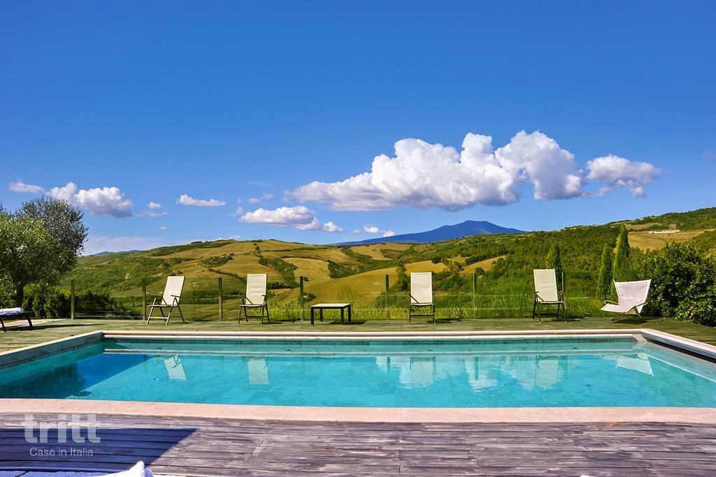 De villa ligt in de Val d’Orcia, een van de mooiste regio’s van Toscane en onderdeel van de UNESCO-werelderfgoedlijst. In de omgeving liggen karakteristieke dorpen zoals Pienza, Monticchiello, Montalcino en Montepulciano, bekend om hun architectuur, kathedralen en wijncultuur. Ook Siena, met het beroemde Piazza del Campo, is goed bereikbaar. Liefhebbers van natuur en beweging kunnen hier prachtige wandel- en fietstochten maken langs oude pelgrimsroutes zoals de Via Francigena. Voor ontspanning zijn de warmwaterbronnen van Bagni San Filippo en Bagno Vignoni een aanrader. De streek staat daarnaast bekend om haar gastronomie, met producten als Pecorino uit Pienza en de wijnen van Montalcino en Montepulciano. Een verblijf hier is een perfecte balans tussen cultuur, natuur en Toscaanse levenskunst.