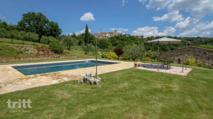 Buiten: Veranda, zwembad (10×6 m, onverwarmd) met terras (steen) en buitendouche, ruime tuin met tuinmeubilair, barbecue, parkeerplaats. Voor de kinderen is er een schommel en een glijbaan. Het vakantiehuis ligt op loopafstand van San Casciano dei Bagni. Hier vindt u onder andere een supermarkt en een restaurantje.