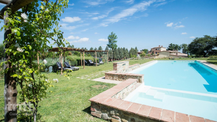 Het appartement maakt deel uit van een kleinschalig resort en heeft een warme Toscaanse uitstraling. Binnen kom je in een lichte woonkamer met zithoek, open haard en satelliet tv, die overloopt in een eethoek en een complete keuken met alle gemakken om zelf te koken. Er zijn 2 slaapkamers, één met een tweepersoonsbed en één met 2 eenpersoonsbedden, beide met een eigen badkamer, wat zorgt voor extra privacy. Buiten, bovenaan de trap naar het appartement, ligt een privéterras met tuinmeubilair. In de gezamenlijke tuin nodigt een hoger gelegen zoutwaterzwembad uit tot ontspannen, met mooie vergezichten over het omliggende landschap.