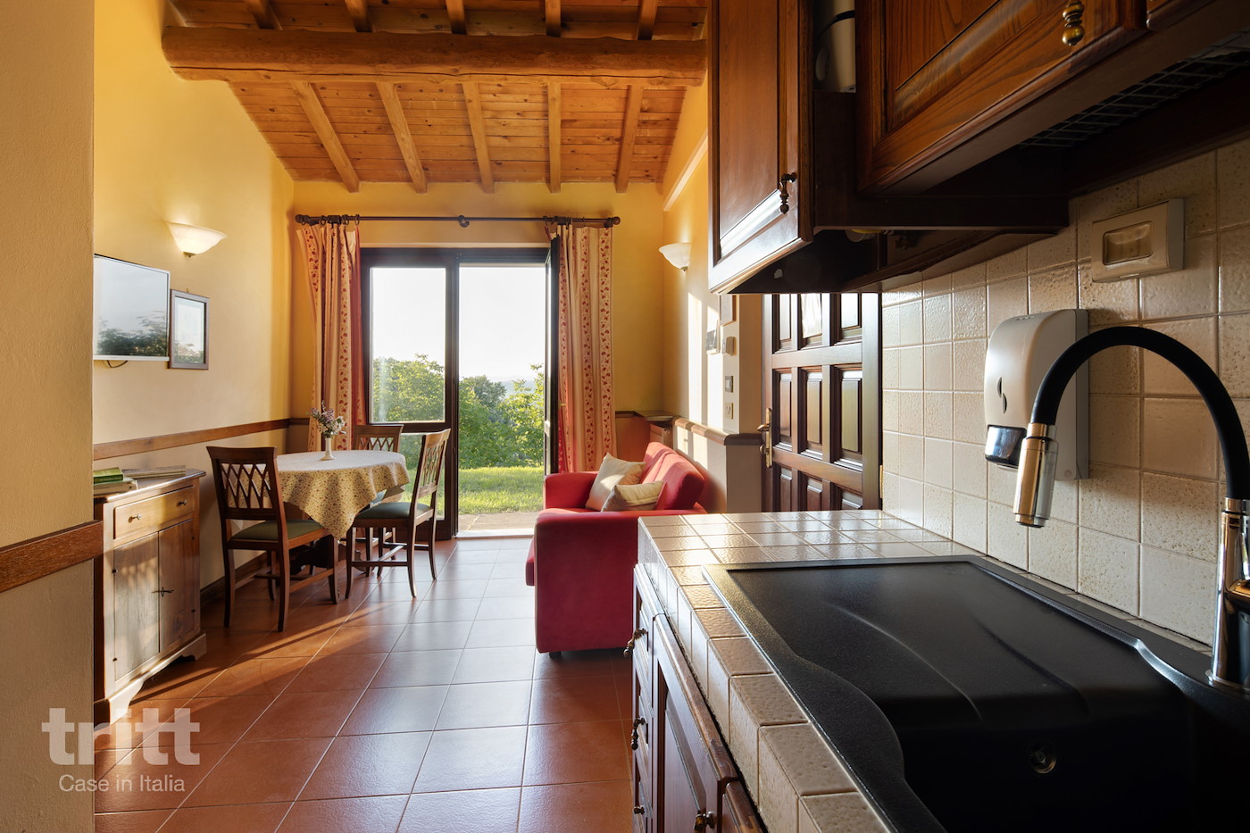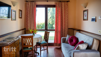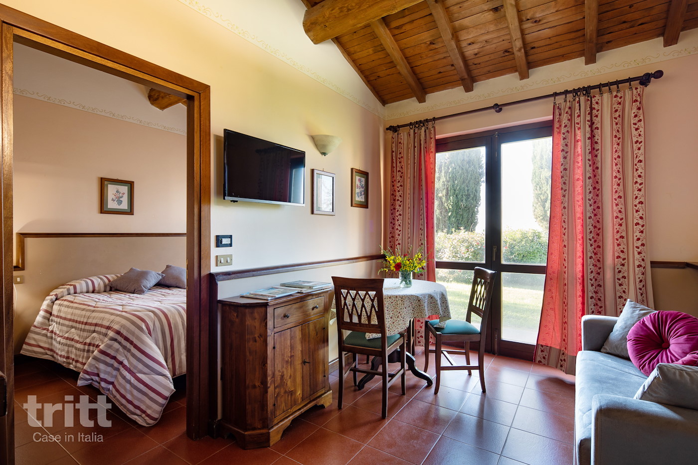 Het landgoed produceert olijfolie, honing, wijn, hazelnoten en verzorgingsproducten op basis van olijfolie. Op het terrein leven verschillende dieren, waaronder geiten, pauwen en pony Ugo. Het centrale landhuis herbergt het restaurant, het zwembad, het sportveld en de hotelkamers, terwijl de appartementen lager op de heuvel liggen, in een groene omgeving op ca. 600 m afstand. Het appartement voor 2 personen bevindt zich op de begane grond en heeft een woonkamer met kitchenette, een slaapkamer en een badkamer met hydromassagedouche. Buiten is er een terras met tuinmeubilair, soms met panoramisch uitzicht. Vanuit het zwembad en het restaurant kijk je uit over de omliggende heuvels en Assisi, terwijl proeverijen, kookcursussen en truffeljachten op aanvraag worden georganiseerd.