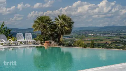 In het groene hart van Umbrië, tussen Assisi en Perugia, ligt een landgoed met een prachtig uitzicht over de Valle Umbra. Hier vind je een kleinschalig vakantieverblijf met kamers en appartementen, omringd door 60 hectare olijfgaarden, wijngaarden en bossen. De rustige sfeer, het panorama en de typisch Umbrische charme maken dit tot een heerlijke plek om te genieten van het Italiaanse buitenleven.