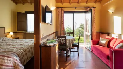 Het landgoed produceert olijfolie, honing, wijn, hazelnoten en verzorgingsproducten op basis van olijfolie. Op het terrein leven verschillende dieren, waaronder geiten, pauwen en pony Ugo. Het centrale landhuis herbergt het restaurant, het zwembad, het sportveld en de hotelkamers, terwijl de appartementen lager op de heuvel liggen, in een groene omgeving op ca. 600 m afstand. Het appartement voor 2 personen bevindt zich op de begane grond en heeft een woonkamer met kitchenette, een slaapkamer en een badkamer met hydromassagedouche. Buiten is er een terras met tuinmeubilair, soms met panoramisch uitzicht. Vanuit het zwembad en het restaurant kijk je uit over de omliggende heuvels en Assisi, terwijl proeverijen, kookcursussen en truffeljachten op aanvraag worden georganiseerd.