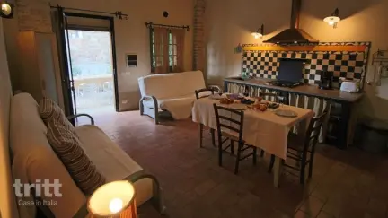 Dit appartement maakt deel uit van een agriturismo met een warme, familiaire uitstraling. Binnen vind je een comfortabel woongedeelte met slaapbank, eethoek en een compacte keuken, een aparte slaapkamer met tweepersoonsbed en een nette badkamer. Buiten beschikt het appartement over een eigen terras met tafel en stoelen, perfect voor een ontbijt of een glas wijn in de avond. Op het terrein ligt een ruim zwembad met ligstoelen, een barbecueplek en verschillende gezamenlijke voorzieningen. Voor kinderen is er volop ruimte om te spelen, terwijl volwassenen genieten van de rustige sfeer en het uitzicht over de vallei.