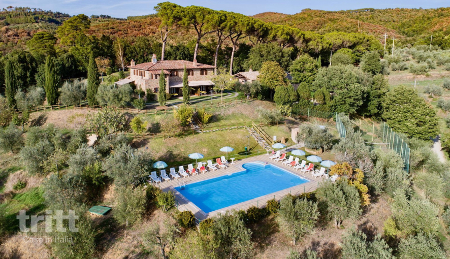 Het appartement ligt op de begane grond en is geschikt voor 5 personen. Binnen vind je een woonkamer met een eenpersoonsslaapbank, open haard en eethoek. De keukenhoek is praktisch ingericht met onder meer een 4-pits kookplaat, vaatwasser, koelkast met vriesvak, magnetron, oven, waterkoker en een moka (Italiaanse koffiemaker). Er is een slaapkamer met een tweepersoonsbed en een slaapkamer met twee eenpersoonsbedden. De badkamer is voorzien van een douche, toilet en wasmachine. Buiten beschikt het appartement over een overdekt privé terras, een fijne plek om te genieten van de rust en het uitzicht. Het appartement is omgeven door een ruime tuin. Hier ligt een zwembad met panoramisch uitzicht, een volleybalveld en een tafeltennistafel voor gezamenlijk gebruik. Voor kinderen zijn er speeltoestellen in de schaduw van de bomen en ’s avonds kan er gebruik worden gemaakt van de gezamenlijke barbecue. De agriturismo wordt omringd door een ruime tuin met veel olijf- en pijnbomen. De eigenaren produceren onder andere olijfolie, wij raden het zeker aan om deze huisgemaakte olijfolie te proeven en te kopen!