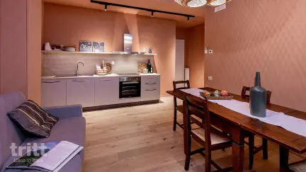 Het appartement is geschikt voor vier personen en beschikt over een woonkamer met een eethoek, open haard, een tweepersoonsslaapbank en een kitchenette, uitgerust met onder andere een vaatwasser en koelkast. De slaapkamer is voorzien van twee eenpersoonsbedden of een tweepersoonsbed. De badkamer is uitgerust met een douche en toilet. Daarnaast is er airconditioning, wifi, sat-TV en een buitenruimte met tuinmeubilair.
