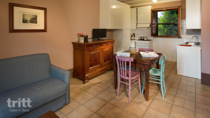 De agriturismo bestaat uit 2 locaties op korte afstand van elkaar, omringd door Toscaanse tuinen en veel ruimte. Op één van de borgo’s liggen een zwembad met kinderbad, speeltoestellen, een tennisbaan en een voetbalveld. Dit vrijstaande 4-persoons appartement beschikt over een woonkamer met slaapbank, kitchenette, een tweepersoonsslaapkamer en een badkamer met douche. Buiten geniet je van een overdekt privéterras met uitzicht op het glooiende landschap. De eigenaren organiseren regelmatig pizza-avonden en proeverijen met producten van het land, en op het terrein leven verschillende boerderijdieren.
