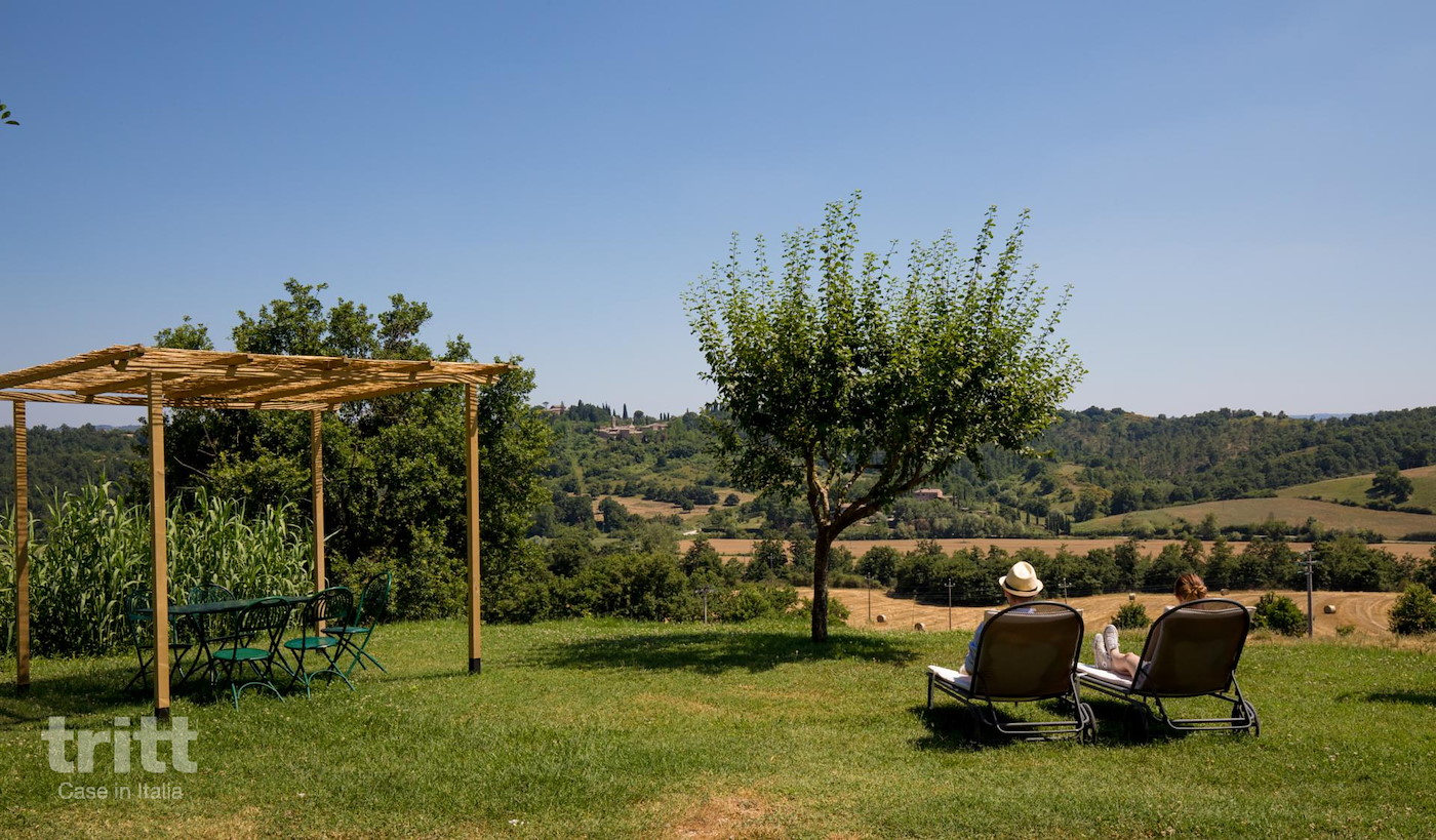 Op het domein vind je Borgo Granaro, gelegen tussen Toscaanse tuinen en voorzien van een zwembad met kinderbad, speeltoestellen, een tennisbaan en een voetbalveld. Dit ruime 8-persoons appartement heeft een lichte woonkamer met keuken en eethoek, 3 slaapkamers en 2 badkamers. Airconditioning is aanwezig voor extra comfort. Buiten ervaar je de stilte en het uitzicht over het groene landschap. De eigenaren organiseren regelmatig pizza-avonden en proeverijen met streekproducten, en op het landgoed leven verschillende boerderijdieren die zorgen voor een authentieke sfeer.