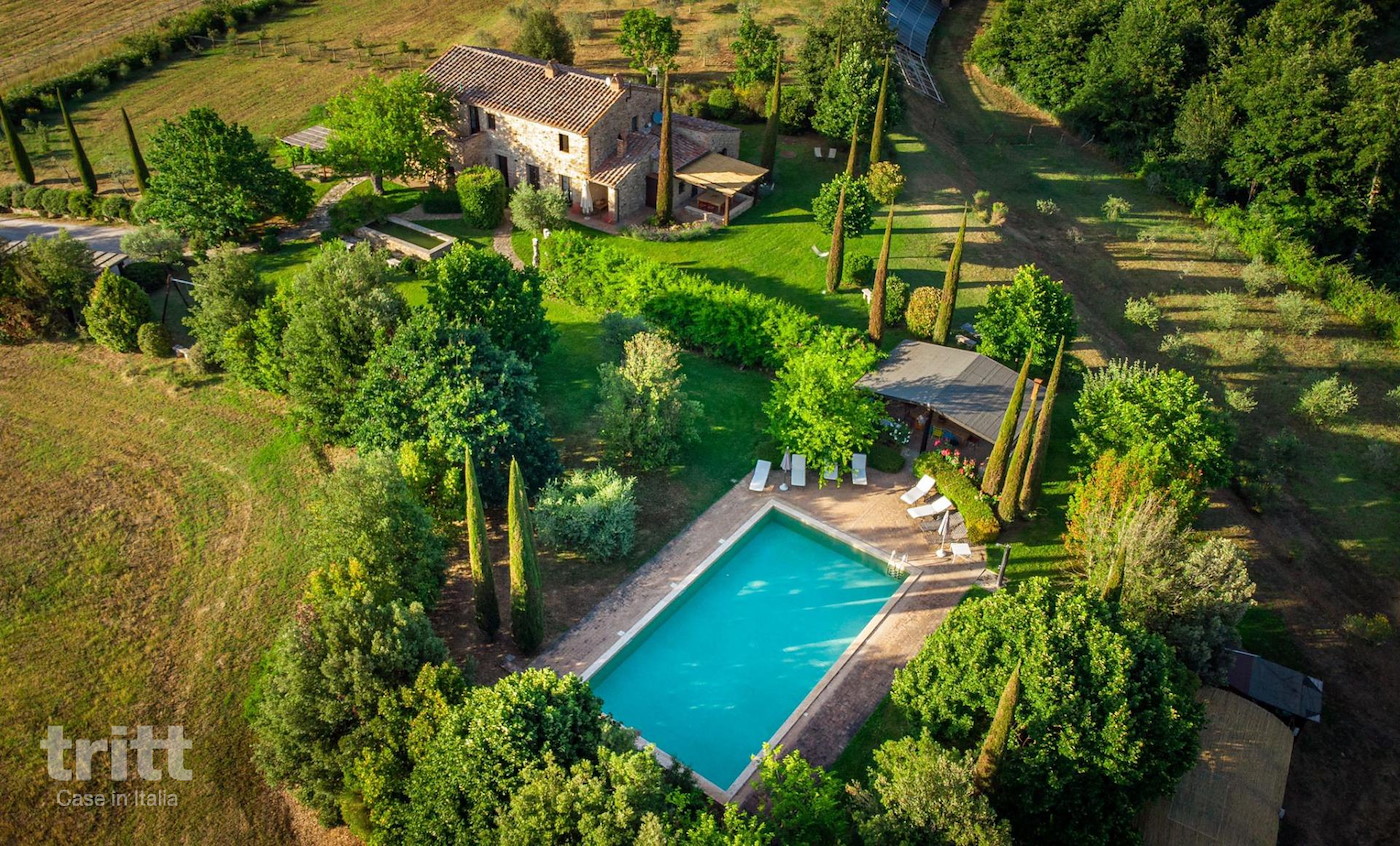 Op een rustige heuvel, midden in het groene grensgebied van Umbrië en Toscane, ligt deze royale vakantievilla met panoramisch uitzicht over het glooiende landschap. Omringd door olijfbomen, wijngaarden en bossen is dit een plek waar ruimte, natuur en comfort samenkomen. Ideaal voor families of vriendengroepen die samen willen genieten, maar ook waarde hechten aan privacy en rust.